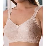 Specially made for the full figure, this Elila soft cup bra has slings in the seamed cups for shaping and support. Wide triple ply straps have floating shoulder pads for extra comfort. It has a five-row, four-column back closure.